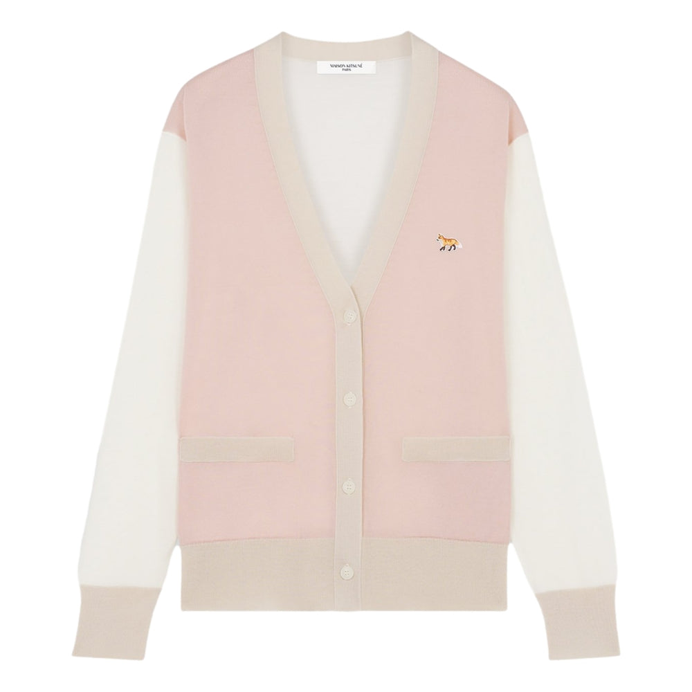 MAISON KITSUNE W BABY FOX PATCH COLOR BLOCK CARDIGAN-ROSE